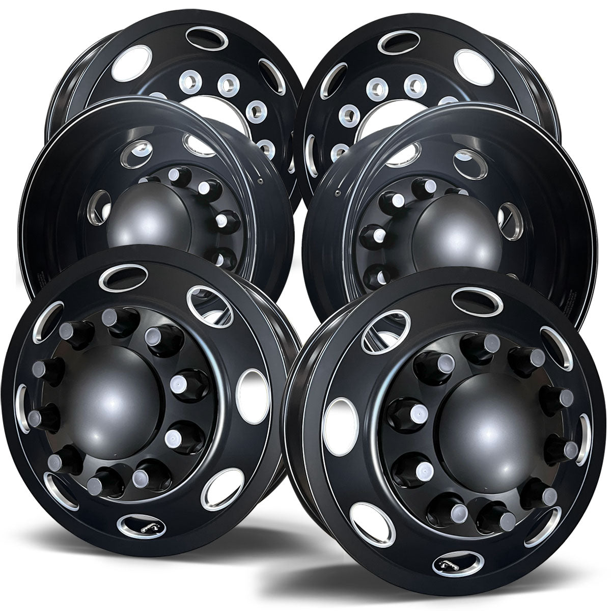 Upgrade your truck’s style and strength with this Northstar Forged Aluminum 6-Wheel Kit, designed to deliver both performance and attitude. Perfect for heavy-duty rigs, this kit includes 2 front wheels and 4 rear wheels, precision-engineered for durability, load capacity, and a standout look on the road.