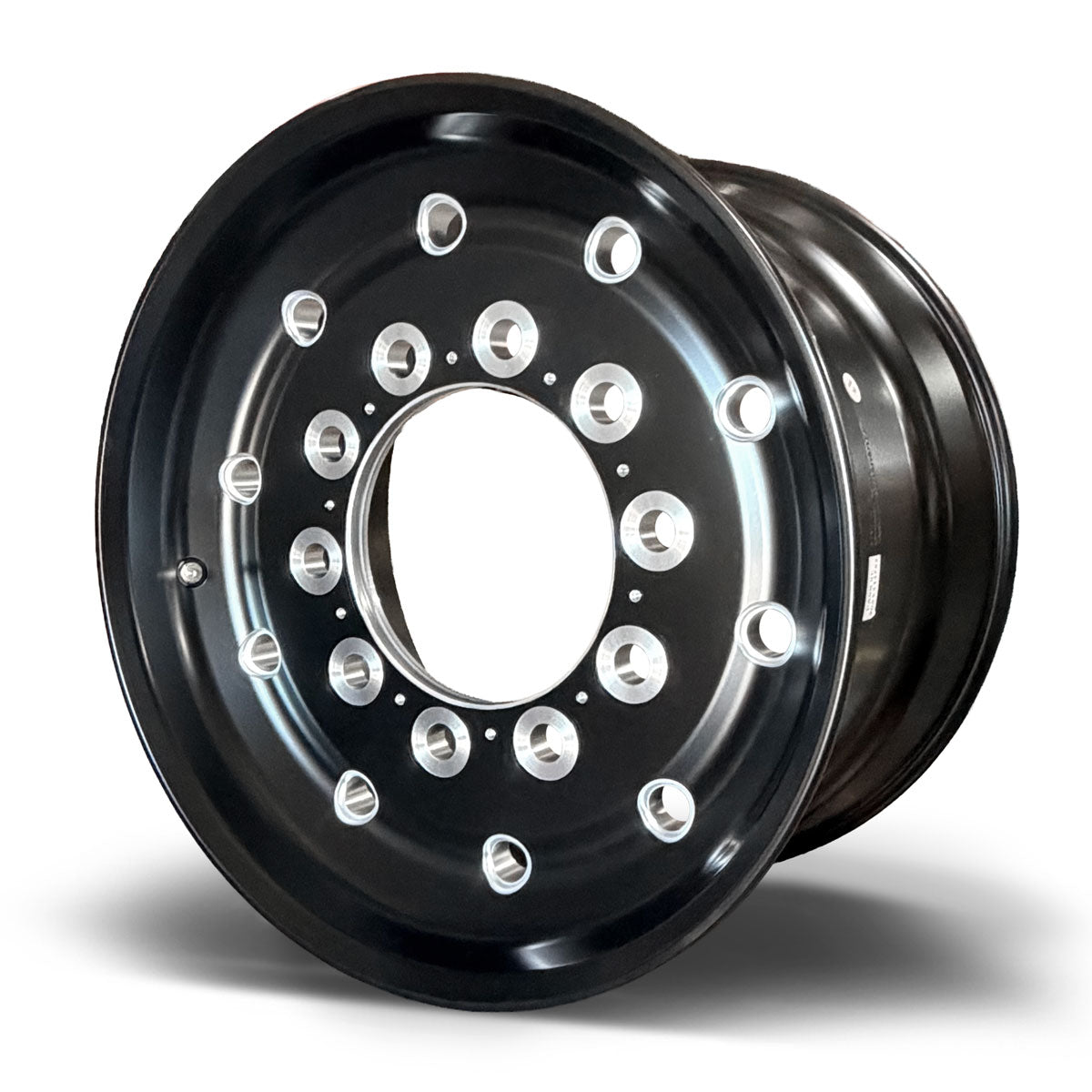 The Northstar “Stellar” 22.5 x 12.25 Satin Black Forged Aluminum Steer Wheel with milled hand holes and 2.75” offset delivers strength, durability, and custom styling—making it the perfect choice for today’s Class 8 front axle applications.