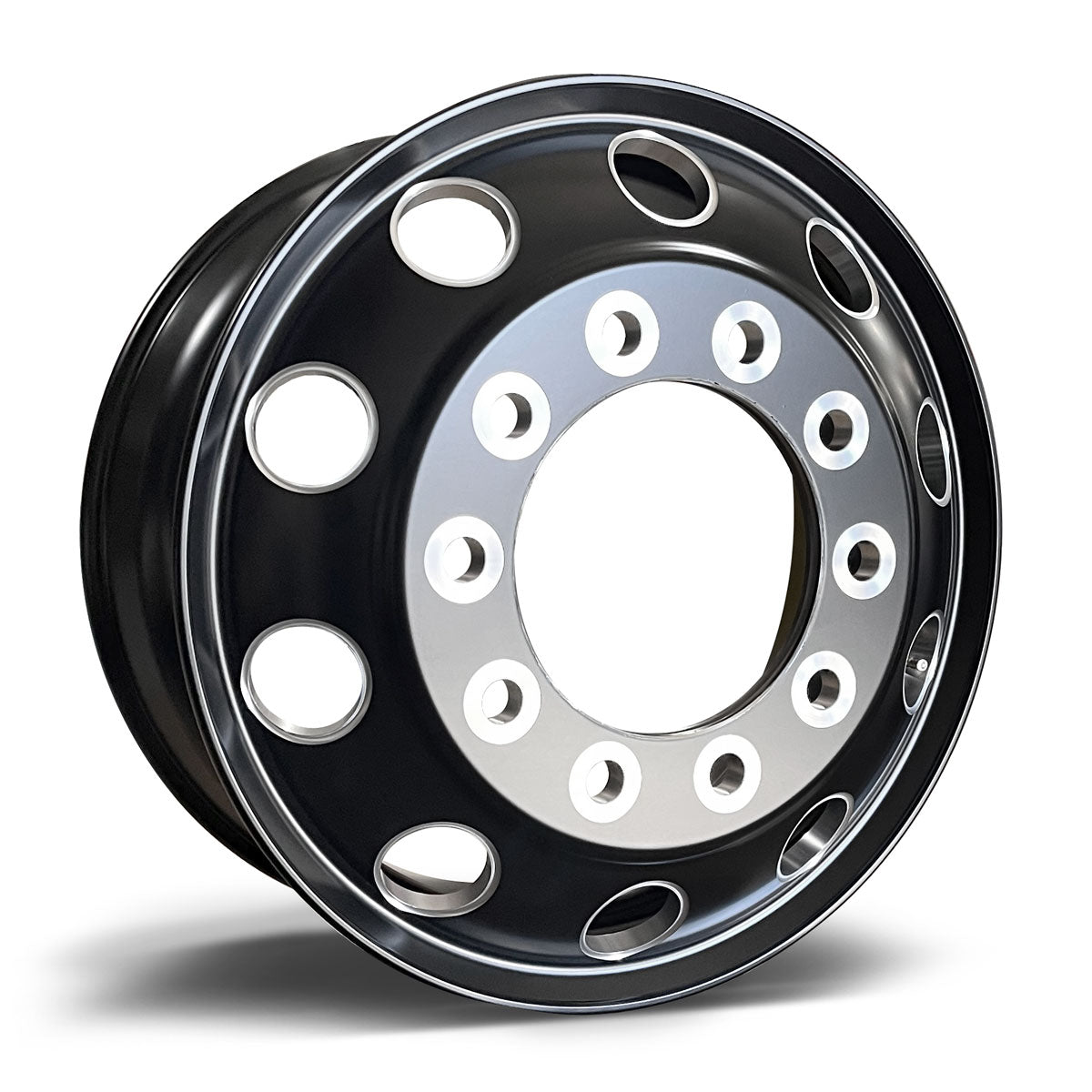 Upgrade your rig with a bold new look and heavy-duty performance. This 22.5 x 8.25 satin black aluminum wheel features round vent holes with precision-milled accents, giving it a modern, high-end appearance that stands out on the road. Designed for the front/steering position, this premium wheel offers both style and strength, compatible with most new model semi-trucks including Peterbilt, Kenworth, Freightliner, Mack, Volvo, International, and Western Star.
